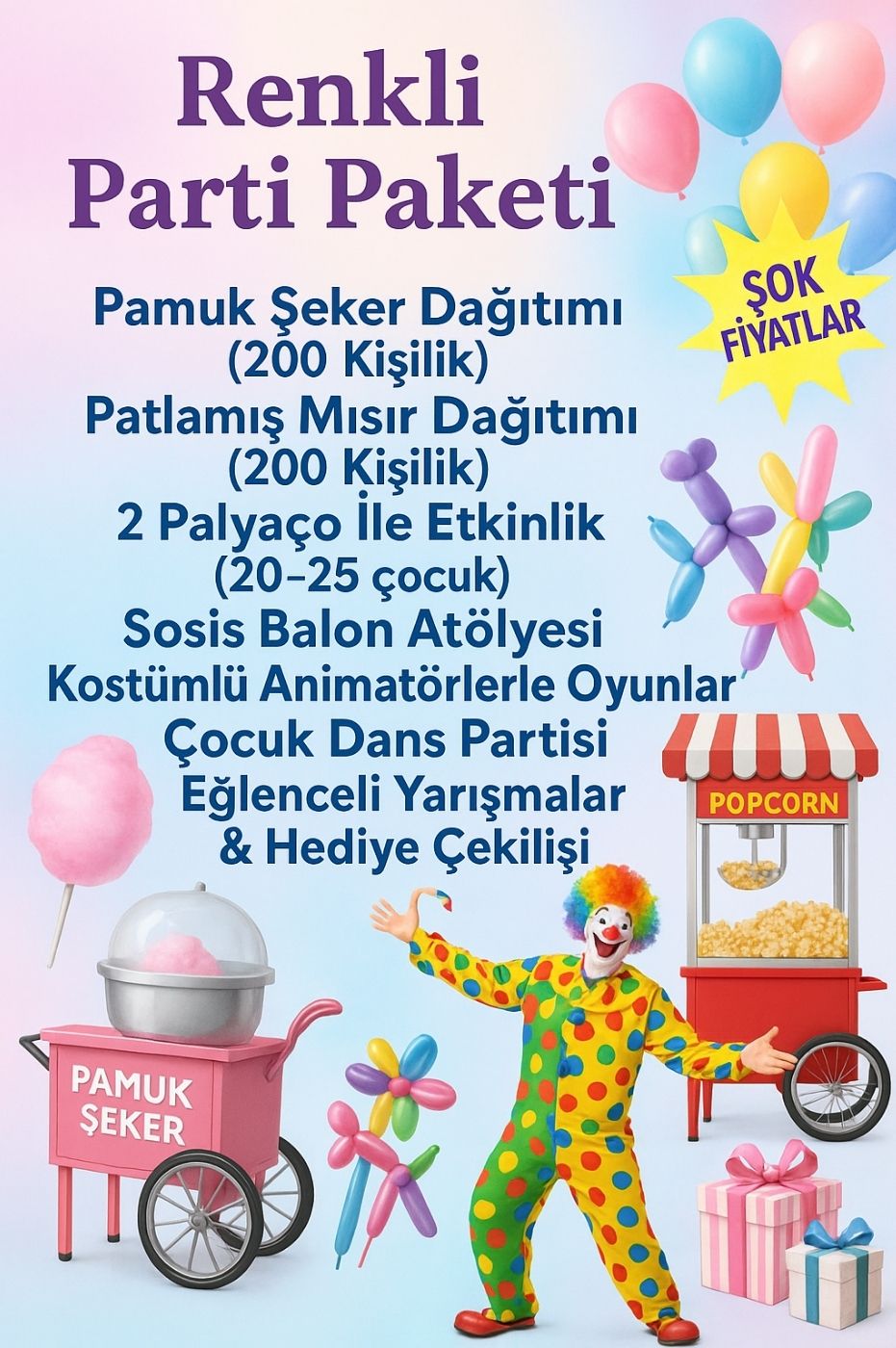 Doğum günü partilerine fark katmak için pamuk şekerin renkli dünyasından yararlanabilirsiniz. Doğum günü partisi sırasında köşede duran bir pamuk şeker arabası sizlere eşsiz bir görsel sağlıyor. Bu eğlence sırasında hazırlanan tazecik pamuk şekerler çocukları eğlendirmek için en güzel tarzı sunuyor. Pamuk şeker yaptırmak ve doğum günlerinizi sıra dışı hale getirmek için bizlerle iletişim kurabilirsiniz.
